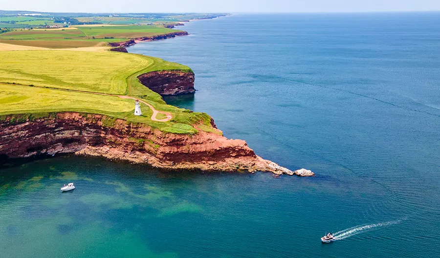 We head North through main and stop for fuel one last time int he states at the Northernmost airport in Maine. Entering New Brunswick Canada, we are officially on our way towards the first big destination, AntiCosti Island. We fly low along the beaches of the "Graveyard Of The Gulf", named for the 400+ ships that have run aground and sunk here. Keep your eyes sharp for Bald Eagles as this is a popular nesting location for them. As we turn inland to fly around some canyons to spot Vauréal Falls, an incredible 250' high waterfall. Next we fly along the limestone cliffs at Baie de la Tour and admire the beautiful turquoise waters. Our day ends at Gite du Copaco, a 7 room B&B right on the island.